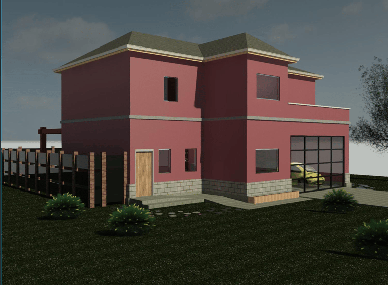 An original two-story residential design assignment, which required an original design, full sheets with dimensions, elevations, sections, and renderings utilizing Twinmotion or other rendering software.