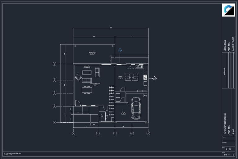 This was a simple assignment that was given to us in class. The requirements for this assignment were a two-story house with 3-4 bedrooms, patio, kitchen, garage, site plan, and bathroom. Needed to have sheets for every elevation, section, site, and cover utilizing our own customized title blocks.