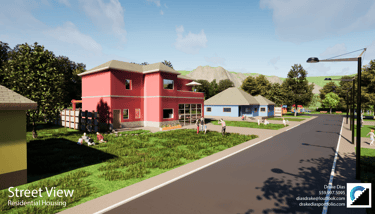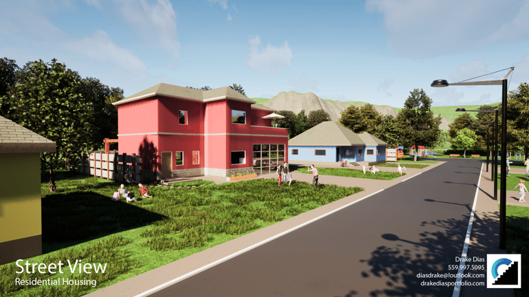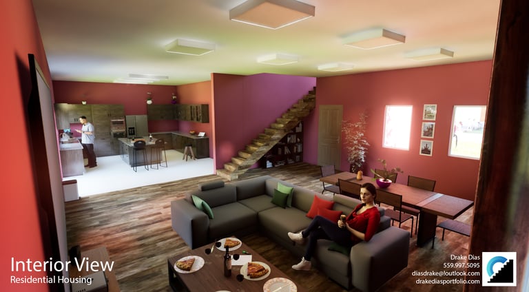 When designing the concepts of the building, I took inspiration from many types of residential architecture that I have either seen or lived in. Due to my family's situation, I have moved from house to house in my home county, so I have experienced many types of residential architecture throughout my life. When developing the model, I started thinking about what made a house a house for a family of four and thought of the components suburban houses have.
